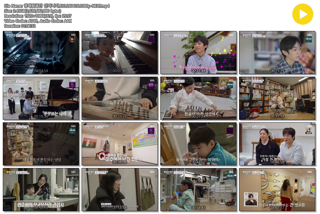 play_circle 동영상 영재발굴단 인피니티 E03 영재발굴단 인피니티.E03.260416.1080p-NEXT person se*** calendar_today 2026.04.16 visibility 7,472 다운로드 1개 파일 folder_zip 영재발굴단 인피니티.E03.260416.1080p-NEXT.mp4 2.5 GB download