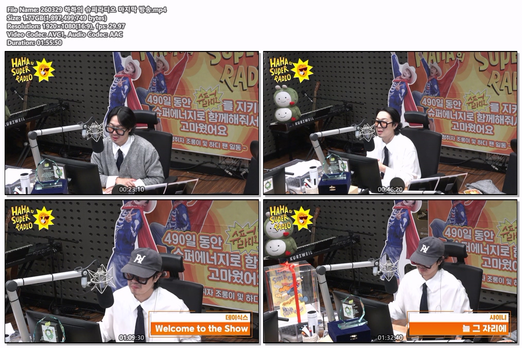 play_circle 동영상 하하의 슈퍼라디오 마지막 260329 하하의 슈퍼라디오 마지막 방송 person he*** calendar_today 2026.04.16 visibility 6,040 다운로드 1개 파일 folder_zip 260329 하하의 슈퍼라디오 마지막 방송.mp4 1.8 GB download