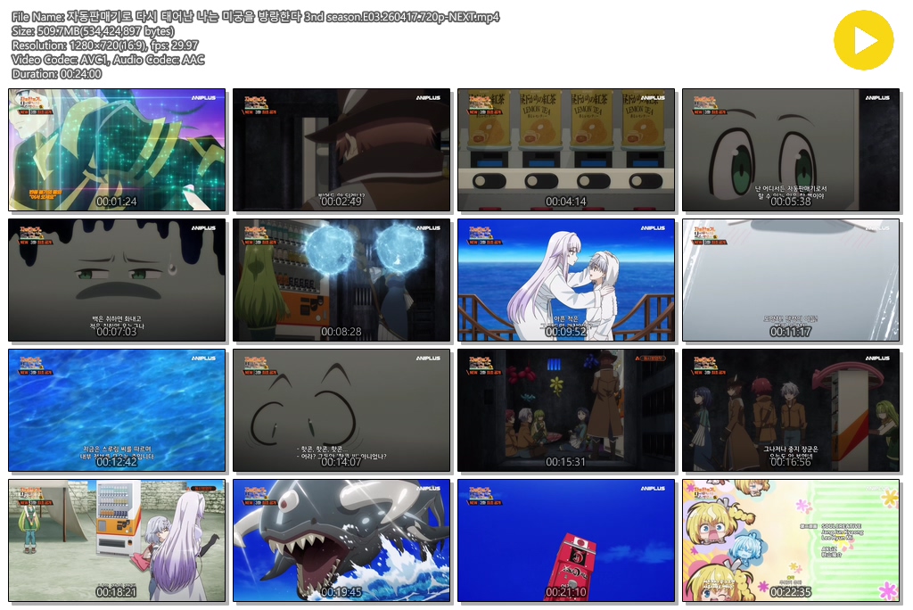 auto_awesome 애니 자동판매기로 다시 태어난 자동판매기로 다시 태어난 나는 미궁을 방랑한다 3nd season.E03.260417.720p-NEXT person se*** calendar_today 2026.04.16 visibility 6,557 다운로드 1개 파일 folder_zip 자동판매기로 다시 태어난 나는 미궁을 방랑한다 3nd season.E03.260417.720p-NEXT.mp4 510 MB download