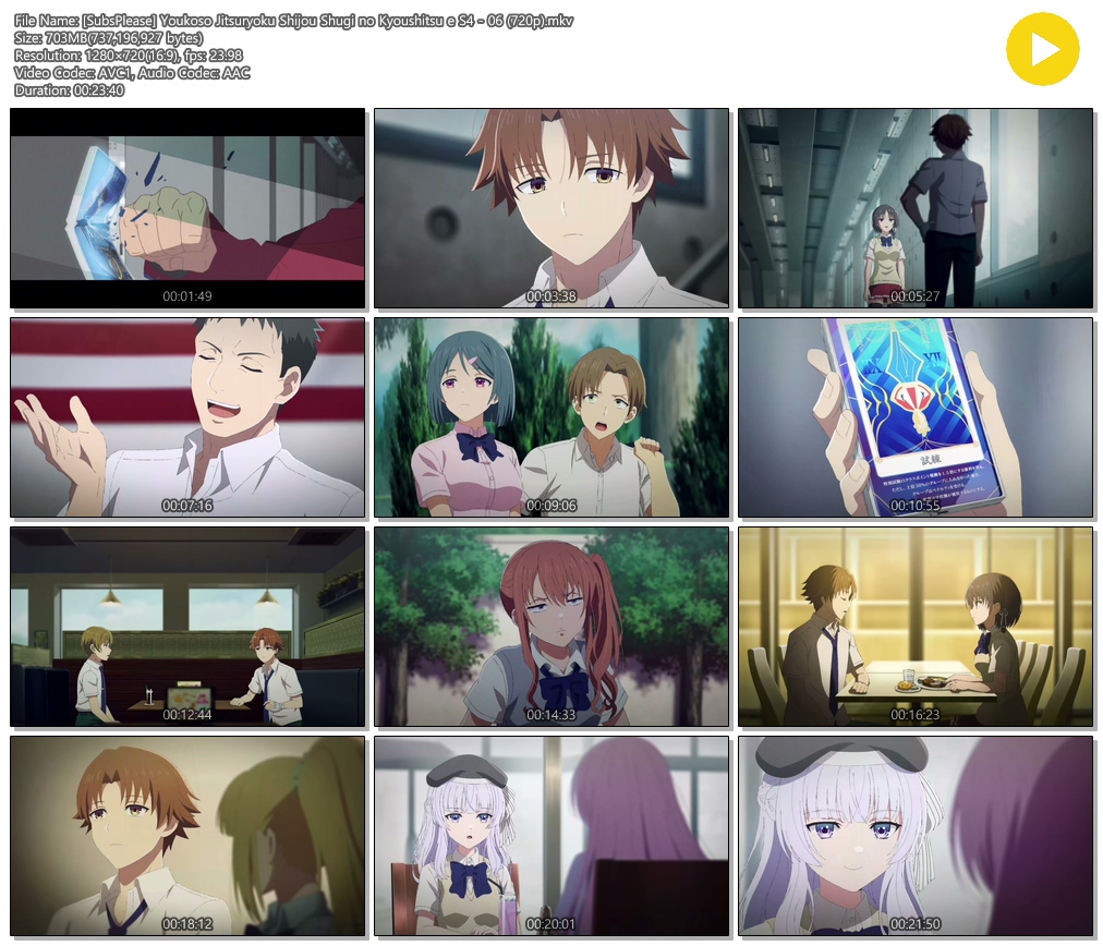 auto_awesome 애니 SubsPlease 어서 오세요 [SubsPlease] 어서 오세요 실력지상주의 교실에 4기 2학년 1학기 - 06 (1280x720) person 에어*** calendar_today 2026.04.16 visibility 6,811 다운로드 2개 파일 folder_zip [SubsPlease] Youkoso Jitsuryoku Shijou Shugi no Kyoushitsu e S4 - 06 (720p).mkv 703 MB download folder_zip [SubsPlease] Youkoso Jitsuryoku Shijou Shugi no Kyoushitsu e S4 - 06 (720p).smi download
