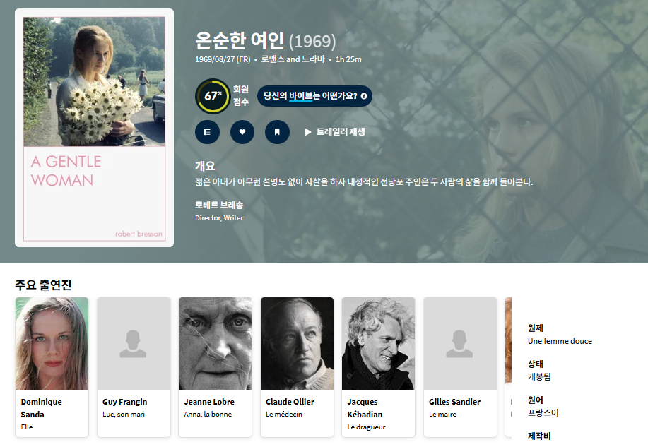 movie 영화 큐레이터 로베르 브레송 [큐레이터] 로베르 브레송 감독 [온순한 여인].. person ru*** calendar_today 2026.04.17 visibility 7,812 다운로드 2개 파일 folder_zip Une femme douce de Robert Bresson.1969.DVDRip.AVC.AAC.mkv 1.7 GB download folder_zip Une femme douce de Robert Bresson.1969.DVDRip.AVC.AAC.smi download