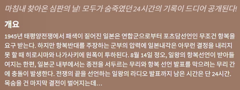 movie 영화 일본패망하루전 마침내 찾아온 일본패망하루전 "마침내 찾아온 심판의 날! 모두가 숨죽였던 24시간의 기록이 드디어 공개된다!" person gg*** calendar_today 2026.04.17 visibility 7,462 다운로드 2개 파일 folder_zip 일본패망하루전.mkv 1.8 GB download folder_zip 일본패망하루전.srt download