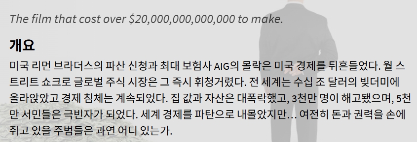 movie 영화 인사이드 세계 경제의 인사이드 잡 "세계 경제의 몰락! 월스트리트가 설계한 거대한 사기극과 파탄 난 서민들의 삶" person gg*** calendar_today 2026.04.17 visibility 4,942 다운로드 2개 파일 folder_zip 인사이드 잡.mkv 1.7 GB download folder_zip 인사이드 잡.smi download