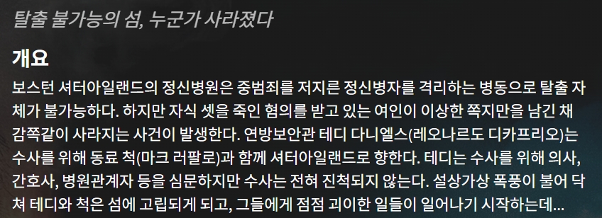 movie 영화 셔터 아일랜드 탈출 셔터 아일랜드 "탈출 불가능의 섬, 누군가 사라졌다" person gg*** calendar_today 2026.04.17 visibility 4,896 다운로드 2개 파일 folder_zip 셔터 아일랜드.mkv 2.3 GB download folder_zip 셔터 아일랜드.sup download