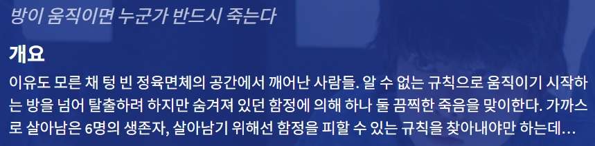 movie 영화 큐브 방이 움직이면 큐브 "방이 움직이면 누군가 반드시 죽는다" person gg*** calendar_today 2026.04.17 visibility 4,223 다운로드 2개 파일 folder_zip 큐브.mkv 1.6 GB download folder_zip 큐브.srt download