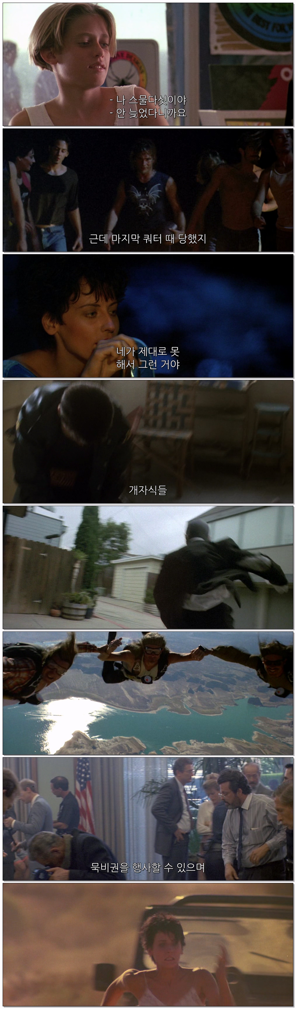 자니 유타는 반항적이고 항상 극단적인 삶을 향해 치닫는 인물. 그는 전도 유망한 풋볼선수였지만 부상으로 은퇴한 뒤 FBI 수사관으로 변신한다. 별로 신통치도 않은 은행 강도 전담반에 배속된 그는 캘리포니아 해안 도시를 무대로 연속 발생하는, 전직 대통령 가면을 한 은행털이단 사건을 수사하면서 인생의 전기를 맞게 된다. 바로 몸과 정신이 완벽하게 조화를 이룬 신비의 사나이 보디를 만나게 된 것. 그는 용의 선상에 올라있는 서퍼 강도단의 보스. 보디는 강도단을 이끄는 악한이지만 바다에 대한 외경심을 서핑을 통해 표현하고, 사회에 대한 불만을 해소하는 독특한 인물. 신분을 숨기고 강도단에 위장 잠입한 자니는 점차 보디에게 빠져든다. 한편 자니의 정체를 먼저 눈치챈 보디는 그의 연인을 인질로 잡고 자니에게 은행털이에 가담하도록 협박하는데...