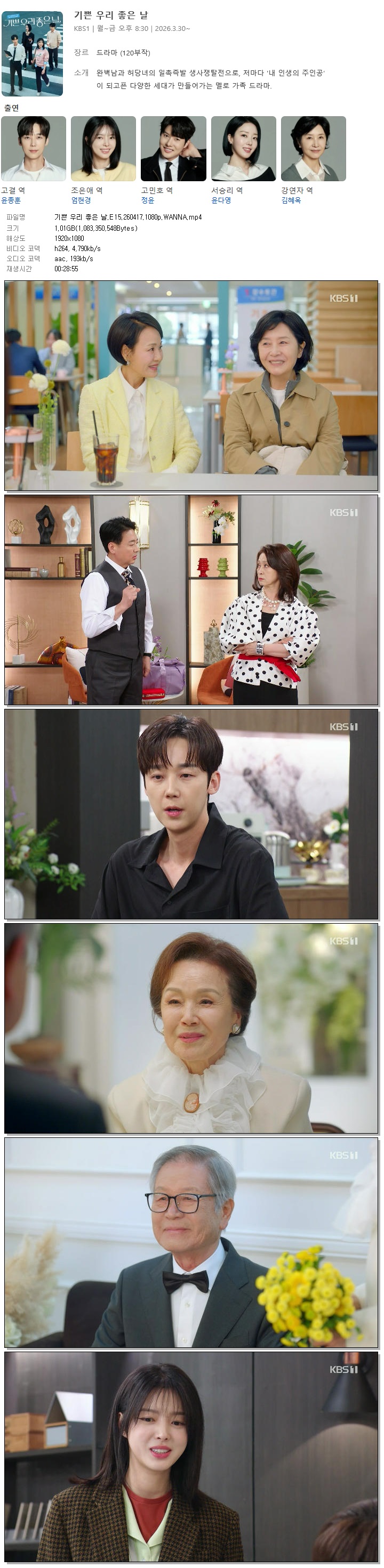 tv 드라마 기쁜 우리 좋은 기쁜 우리 좋은 날.E15.260417.1080p.WANNA person 홀리*** calendar_today 2026.04.17 visibility 4,676 다운로드 1개 파일 folder_zip 기쁜 우리 좋은 날.E15.260417.1080p.WANNA.mp4 1.0 GB download
