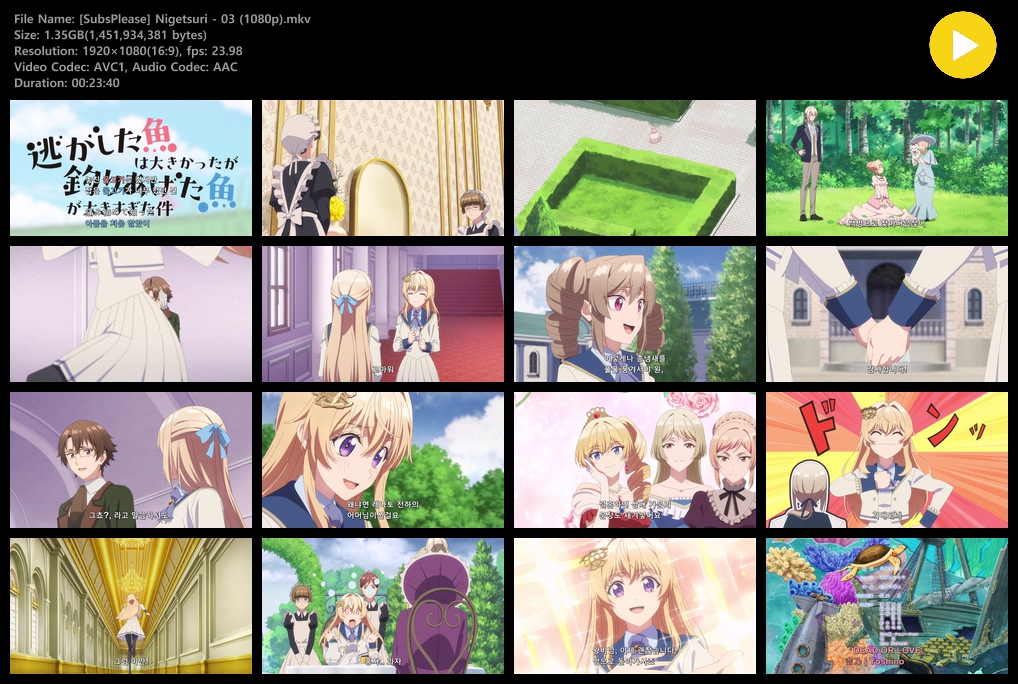 auto_awesome 애니 놓친 물고기는 컸지만 놓친 물고기는 컸지만 잡은 물고기가 너무 컸던 건 (2026) - 03 (1920x1080) person zz*** calendar_today 2026.04.17 visibility 7,102 다운로드 2개 파일 folder_zip [SubsPlease] Nigetsuri - 03 (1080p).mkv 1.4 GB download folder_zip [SubsPlease] Nigetsuri - 03 (1080p).srt download