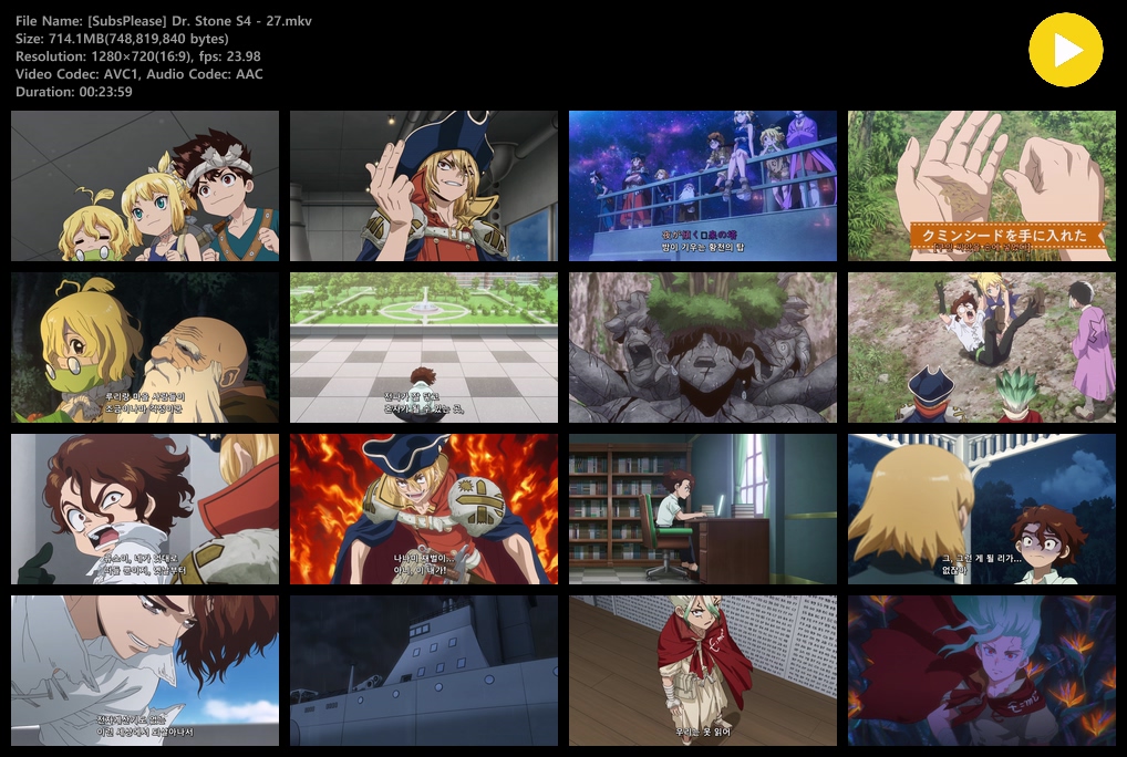 auto_awesome 애니 닥터 스톤 4기 닥터 스톤 4기 3쿨 (2026) - 27 (1280x720) person zz*** calendar_today 2026.04.17 visibility 6,717 다운로드 2개 파일 folder_zip [SubsPlease] Dr. Stone S4 - 27.mkv 714 MB download folder_zip [SubsPlease] Dr. Stone S4 - 27.smi download
