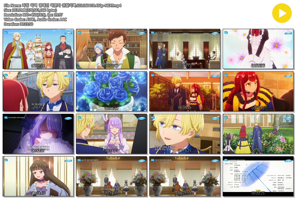auto_awesome 애니 자칭 악역 영애인 자칭 악역 영애인 약혼자 관찰기록.E03.260418.450p-NEXT person se*** calendar_today 2026.04.17 visibility 4,238 다운로드 1개 파일 folder_zip 자칭 악역 영애인 약혼자 관찰기록.E03.260418.450p-NEXT.mp4 264 MB download