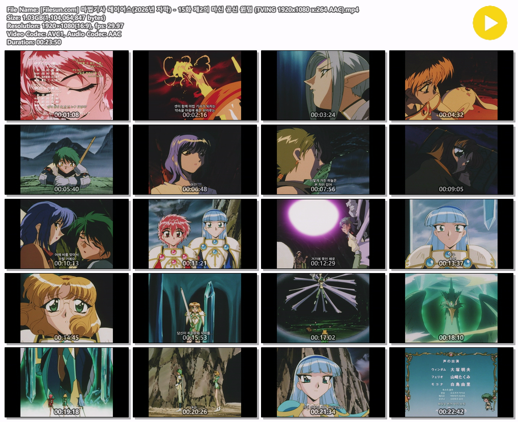 auto_awesome 애니 공식자막 마법기사 레이어스 [공식자막] 마법기사 레이어스 - 15화 제2의 마신 공신 윈덤 person 이샤*** calendar_today 2026.04.17 visibility 6,471 다운로드 1개 파일 folder_zip 마법기사 레이어스(2026년 자막) - 15화 제2의 마신 공신 윈덤 (TVING 1920x1080 x.264 AAC).mp4 1.0 GB download