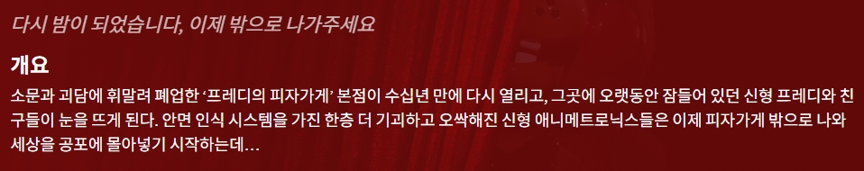 movie 영화 프레디의 피자가게 업그레이드된 프레디의 피자가게 2 "업그레이드된 공포! 안면 인식 시스템을 장착하고 가게 밖으로 탈출한 애니메트로닉스들의 습격" person gg*** calendar_today 2026.04.18 visibility 7,986 다운로드 2개 파일 folder_zip 프레디의 피자가게 2.mkv 757 MB download folder_zip 프레디의 피자가게 2.srt download
