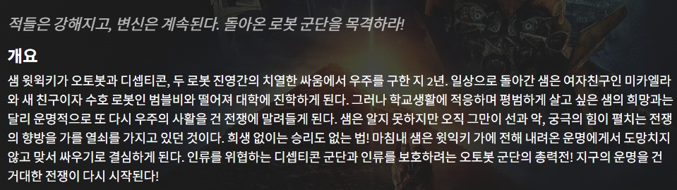 movie 영화 트랜스포머 패자의 역습 트랜스포머- 패자의 역습 "적들은 강해지고, 변신은 계속된다." person gg*** calendar_today 2026.04.18 visibility 6,493 다운로드 2개 파일 folder_zip 트랜스포머- 패자의 역습.mkv 7.6 GB download folder_zip 트랜스포머- 패자의 역습.smi download