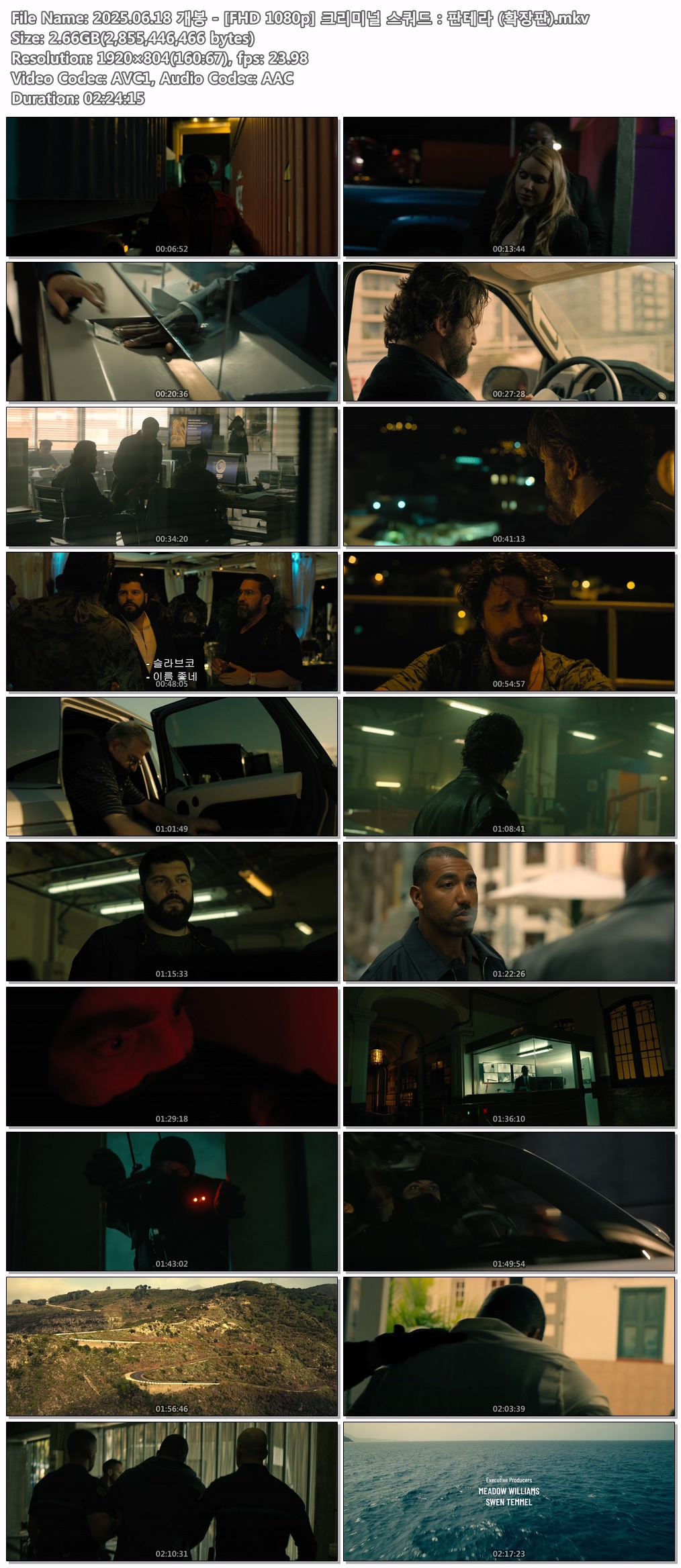 movie 영화 개봉 FHD 크리미널 2025.06.18 개봉 - [FHD 1080p] 크리미널 스쿼드:판테라 (확장판) person 07*** calendar_today 2026.04.18 visibility 6,610 다운로드 2개 파일 folder_zip 2025.06.18 개봉 - [FHD 1080p] 크리미널 스쿼드:판테라 (확장판).mkv 2.7 GB download folder_zip 2025.06.18 개봉 - [FHD 1080p] 크리미널 스쿼드:판테라 (확장판).smi download