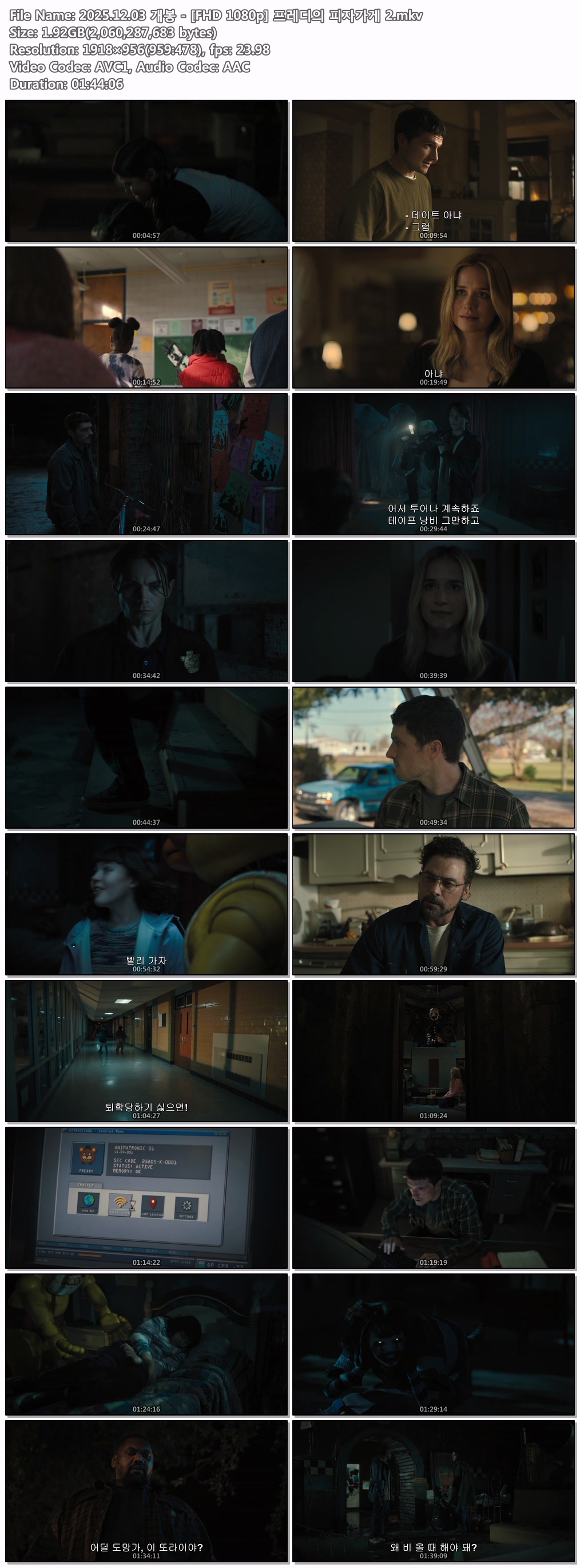 movie 영화 개봉 FHD 프레디의 2025.12.03 개봉 - [FHD 1080p] 프레디의 피자가게 2 person 07*** calendar_today 2026.04.18 visibility 5,692 다운로드 2개 파일 folder_zip 2025.12.03 개봉 - [FHD 1080p] 프레디의 피자가게 2.mkv 1.9 GB download folder_zip 2025.12.03 개봉 - [FHD 1080p] 프레디의 피자가게 2.smi download