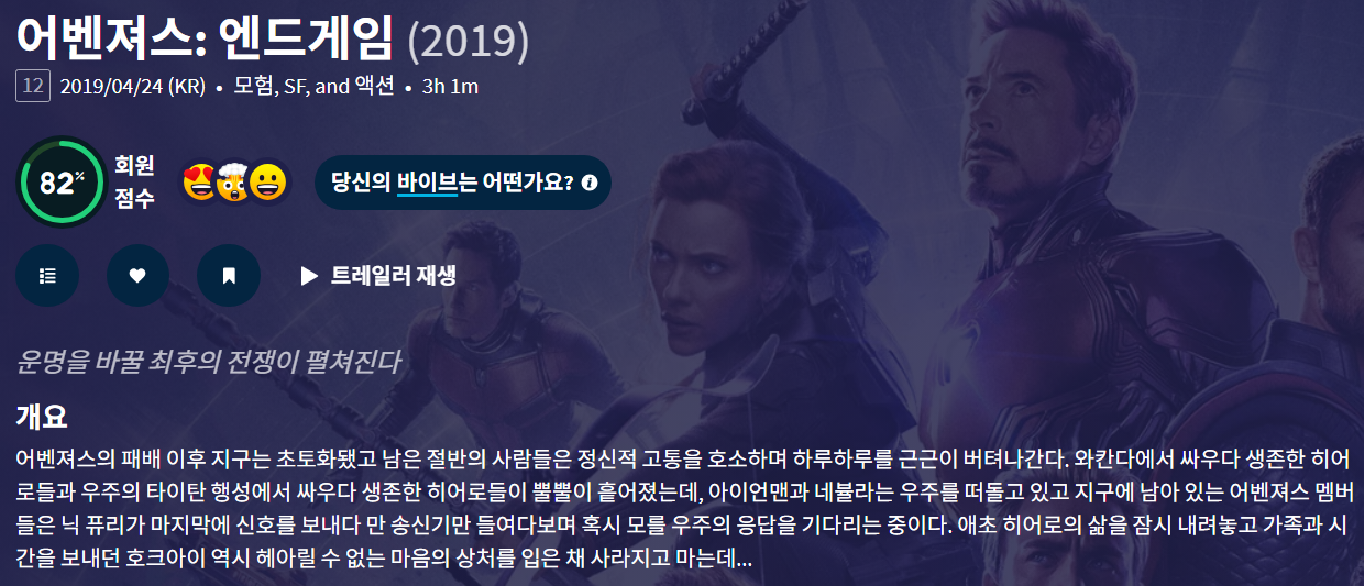 movie 영화 어벤져스 엔드게임 운명을 어벤져스: 엔드게임 - 운명을 바꿀 최후의 전쟁 person gg*** calendar_today 2026.01.01 visibility 5,923 다운로드 1개 파일 folder_zip 어벤져스- 엔드게임.mp4 2.3 GB download