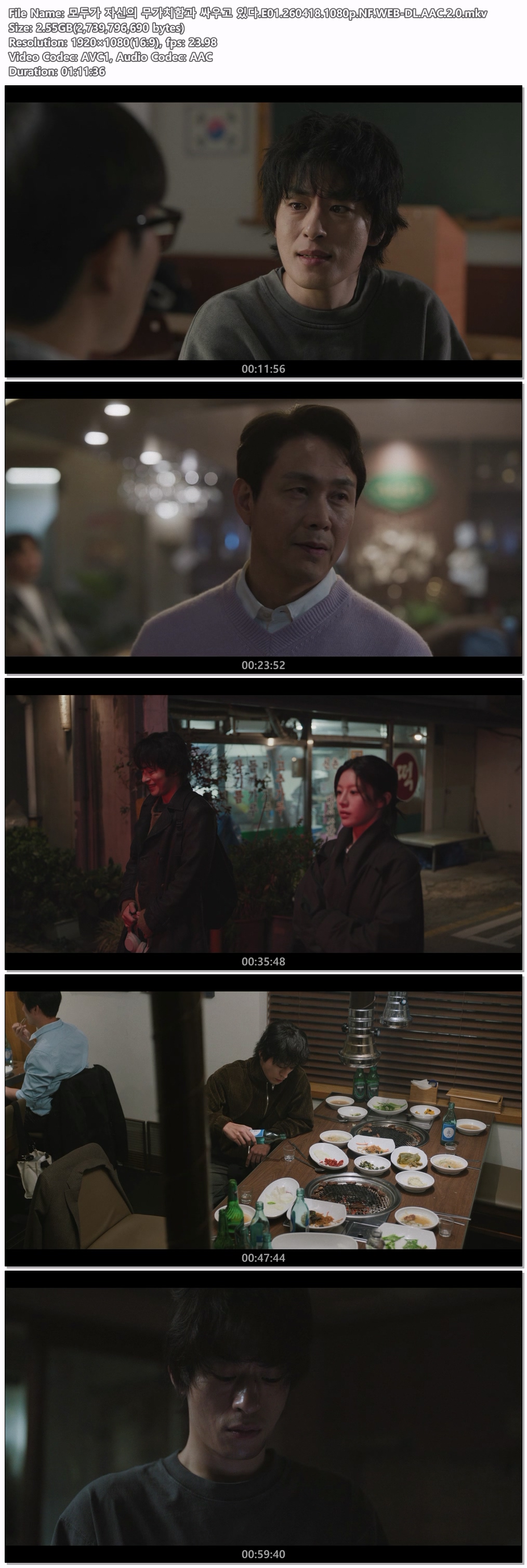 tv 드라마 모두가 자신의 무가치함과 모두가 자신의 무가치함과 싸우고 있다.E01.260418.1080p.NF.WEB-DL.AAC.2.0 person iq*** calendar_today 2026.04.18 visibility 7,819 다운로드 1개 파일 folder_zip 모두가 자신의 무가치함과 싸우고 있다.E01.260418.1080p.NF.WEB-DL.AAC.2.0.mkv 2.6 GB download