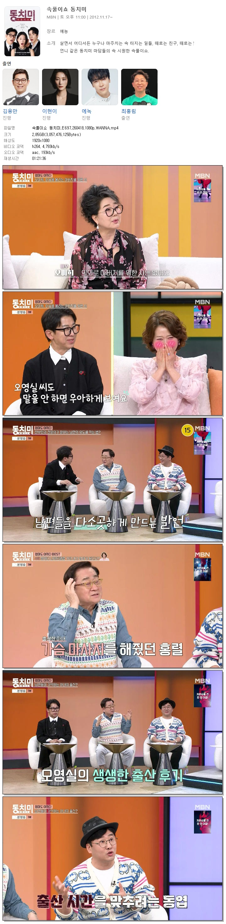 play_circle 동영상 속풀이쇼 동치미 E697 속풀이쇼 동치미.E697.260418.1080p.WANNA person 홀리*** calendar_today 2026.04.18 visibility 3,081 다운로드 1개 파일 folder_zip 속풀이쇼 동치미.E697.260418.1080p.WANNA.mp4 2.8 GB download