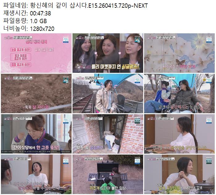 play_circle 동영상 황신혜의 같이 삽시다 황신혜의 같이 삽시다.E15.260415.720p-NEXT person zn*** calendar_today 2026.04.18 visibility 6,398 다운로드 1개 파일 folder_zip 황신혜의 같이 삽시다.E15.260415.720p-NEXT.mp4 1.0 GB download