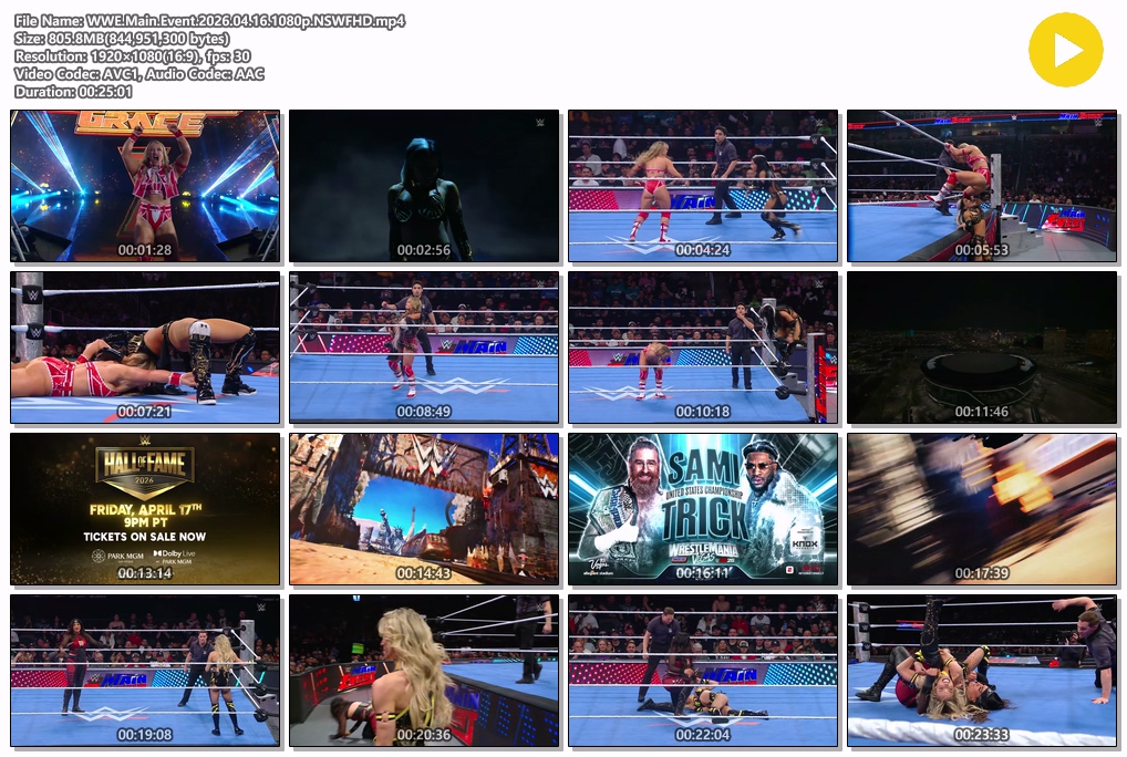 play_circle 동영상 WWE Main Event [핖.WWE] Main.Event.26.04.16 [1080P] person MJ*** calendar_today 2026.04.18 visibility 3,828 다운로드 1개 파일 folder_zip WWE.Main.Event.2026.04.16.1080p.NSWFHD.mp4 806 MB download