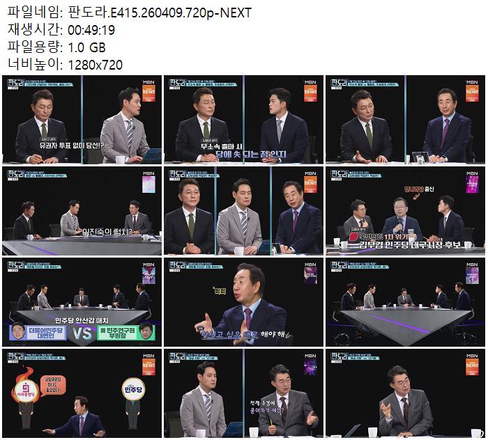 play_circle 동영상 판도라 E415 NEXT 판도라.E415.260409.720p-NEXT person zn*** calendar_today 2026.04.18 visibility 7,952 다운로드 1개 파일 folder_zip 판도라.E415.260409.720p-NEXT.mp4 1.0 GB download