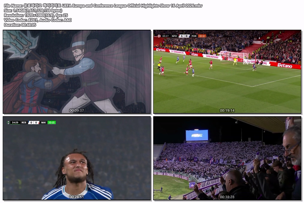 play_circle 동영상 유로파리그 하이라이트 UEFA 유로파리그 하이라이트 UEFA Europa and Conference League Official Highlights Show 16 April 2026 person he*** calendar_today 2026.04.18 visibility 3,751 다운로드 1개 파일 folder_zip 유로파리그 하이라이트 UEFA Europa and Conference League Official Highlights Show 16 April 2026.mkv 1.5 GB download