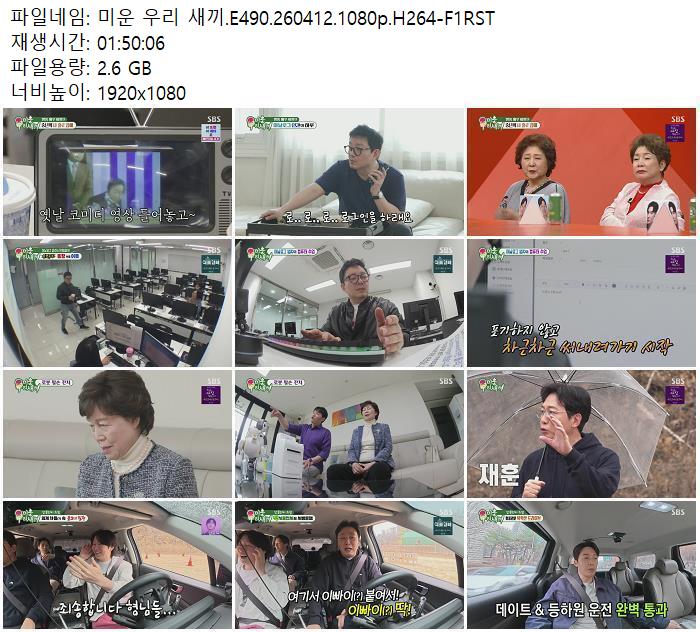 play_circle 동영상 미운 우리 새끼 미운 우리 새끼.E490.260412.1080p.H264-F1RST person zn*** calendar_today 2026.04.18 visibility 5,597 다운로드 1개 파일 folder_zip 미운 우리 새끼.E490.260412.1080p.H264-F1RST.mp4 2.6 GB download