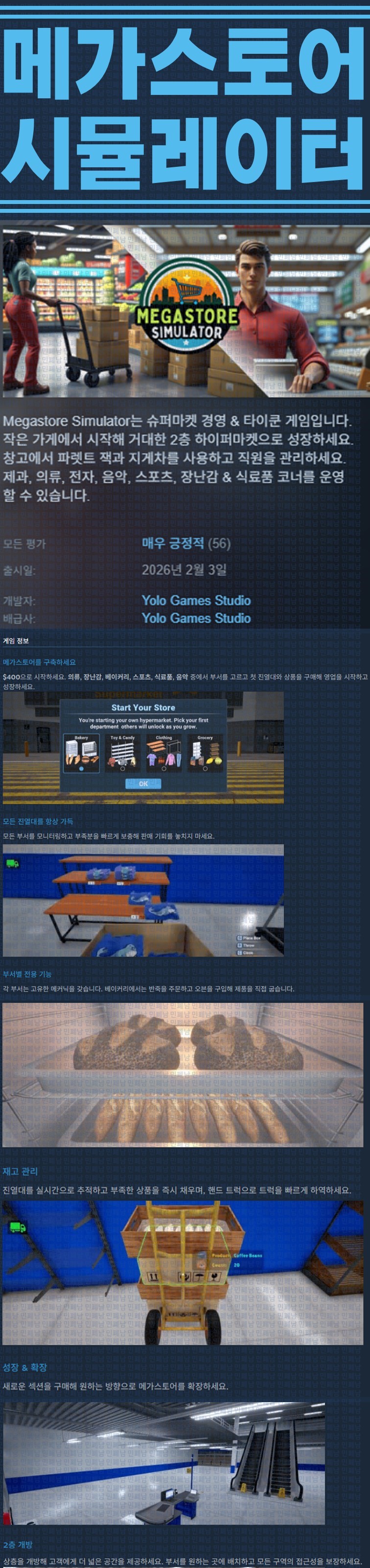 sports_esports 게임 한글무설치 메가스토어 시뮬레이터 [한글무설치] 메가스토어 시뮬레이터 v0.4.2.2 person ze*** calendar_today 2026.04.18 visibility 6,035 실행Megastore Simulator.exe26.04.18 update 이지크립트:0000 다운로드 1개 파일 folder_zip Megastore Simulator.7z.ezc 2.3 GB download