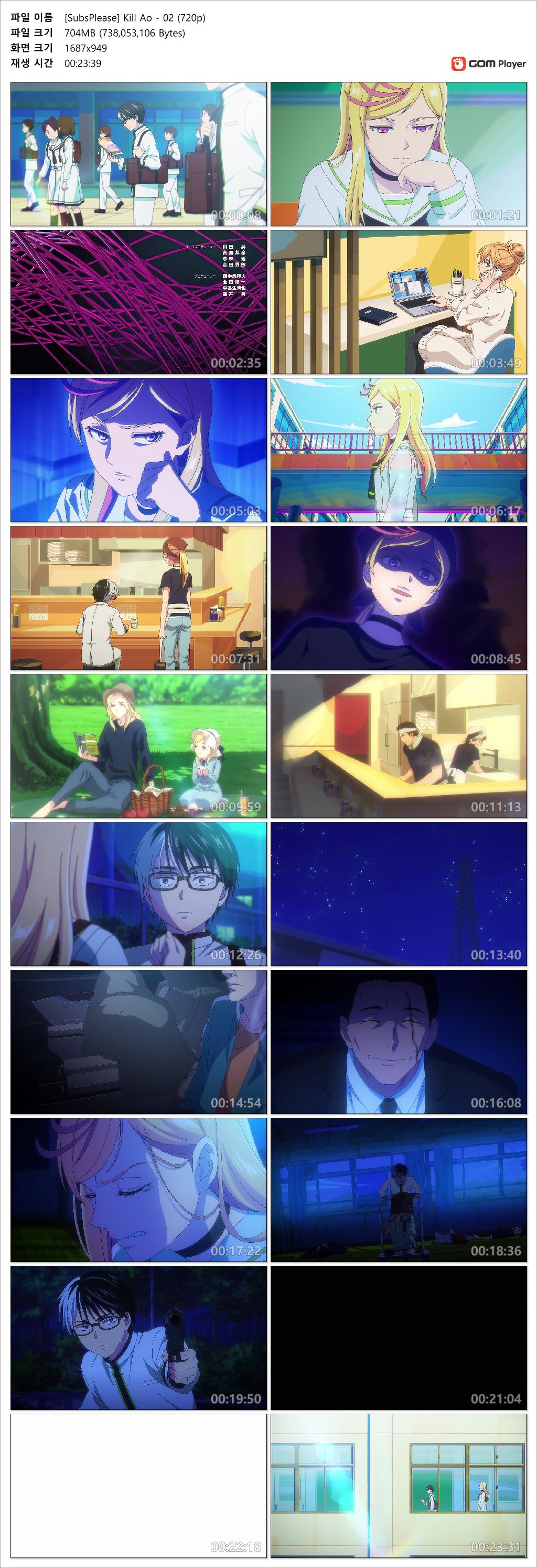 auto_awesome 애니 블루 02화 1280x720 킬 블루 - 02화 (1280x720 x264 AAC) person 인생*** calendar_today 2026.04.18 visibility 7,749 다운로드 2개 파일 folder_zip [SubsPlease] Kill Ao - 02 (720p).mkv 704 MB download folder_zip [SubsPlease] Kill Ao - 02 (720p).srt download