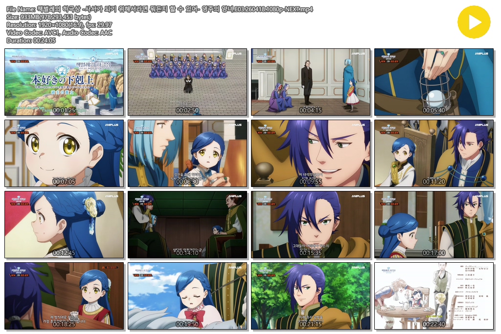 auto_awesome 애니 책벌레의 하극상 사서가 책벌레의 하극상 -사서가 되기 위해서라면 뭐든지 할 수 있어- 영주의 양녀.E03.260418.1080p-NEXT person se*** calendar_today 2026.04.18 visibility 7,065 다운로드 1개 파일 folder_zip 책벌레의 하극상 -사서가 되기 위해서라면 뭐든지 할 수 있어- 영주의 양녀.E03.260418.1080p-NEXT.mp4 933 MB download