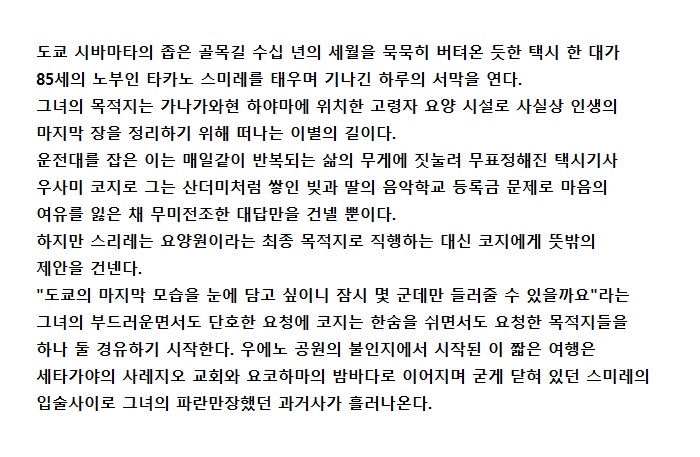 movie 영화 TOKYO 택시 기무라 [TOKYO 택시] 기무라 타쿠야x아오이 유우x이준영 자체자막 person tk*** calendar_today 2026.04.19 visibility 6,905 다운로드 1개 파일 folder_zip [TOKYO 택시] 기무라 타쿠야x아오이 유우x이준영 자체자막.mkv 1.9 GB download