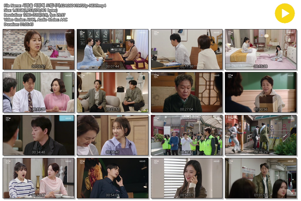 tv 드라마 사랑을 처방해 드립니다 사랑을 처방해 드립니다.E24.260419.720p-NEXT person se*** calendar_today 2026.04.19 visibility 7,075 다운로드 1개 파일 folder_zip 사랑을 처방해 드립니다.E24.260419.720p-NEXT.mp4 1.6 GB download