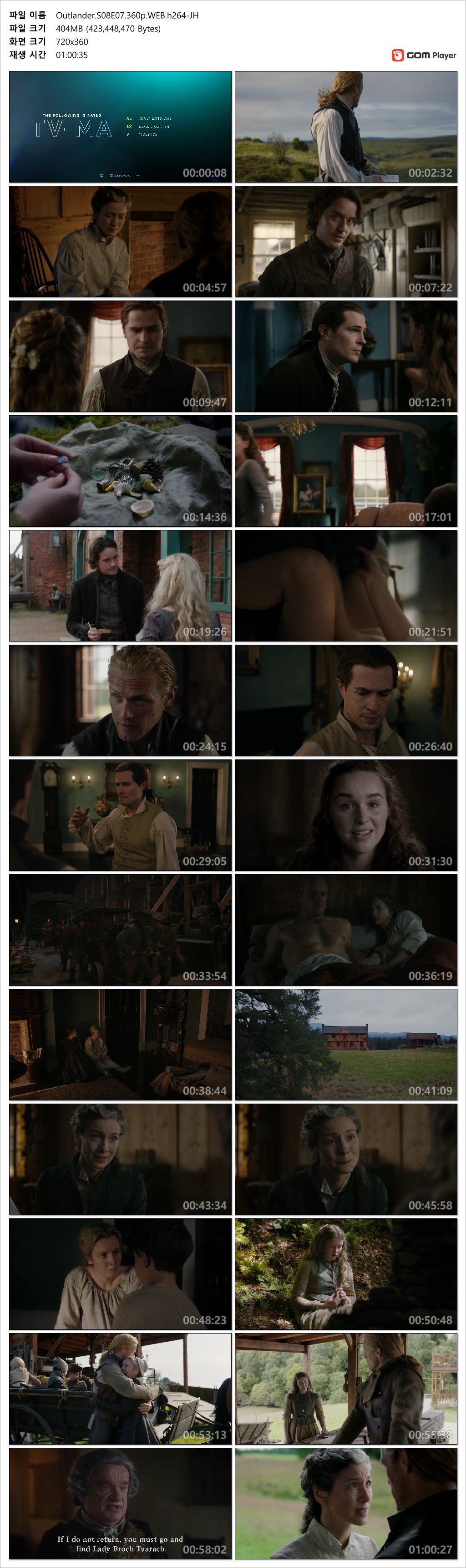 tv 드라마 아웃랜더 시즌8 07화 아웃랜더 시즌8 07화 한글자막 360p [Outlander] person kj*** calendar_today 2026.04.19 visibility 7,473 다운로드 2개 파일 folder_zip Outlander.S08E07.360p.WEB.h264-JH.mp4 404 MB download folder_zip Outlander.S08E07.360p.WEB.h264-JH.srt download