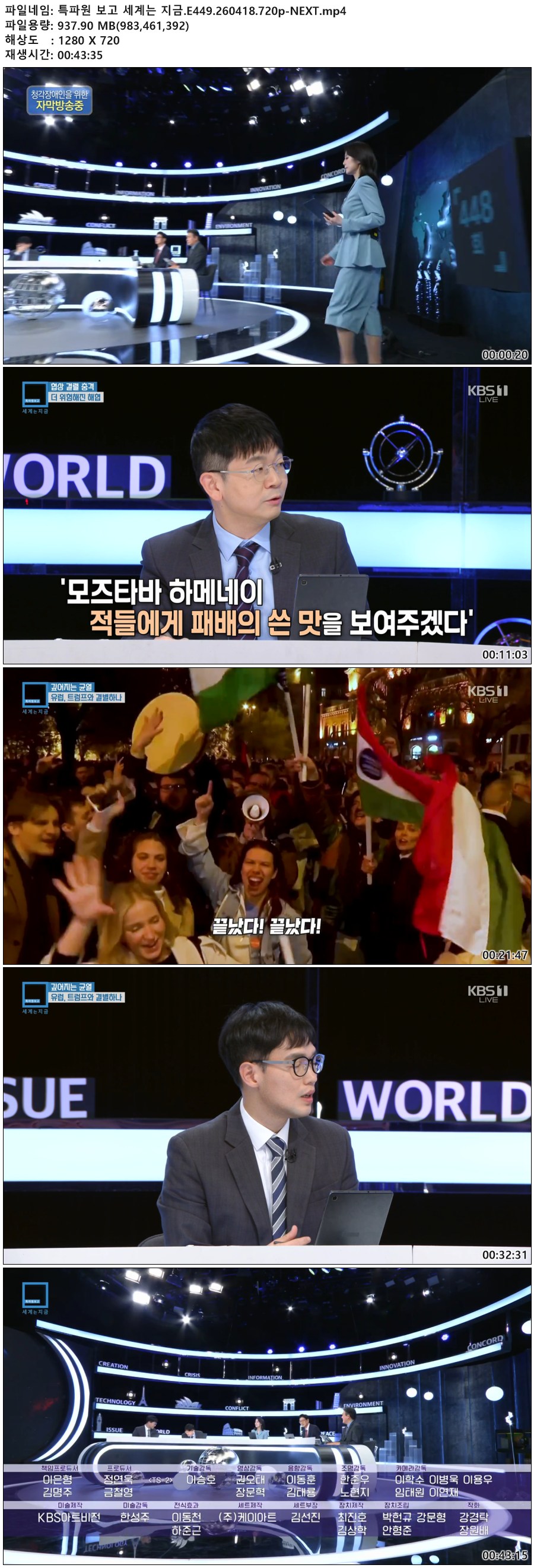 play_circle 동영상 특파원 보고 세계는 특파원 보고 세계는 지금.E449.260418.720p-NEXT person qk*** calendar_today 2026.04.19 visibility 4,863 다운로드 1개 파일 folder_zip 특파원 보고 세계는 지금.E449.260418.720p-NEXT.mp4 938 MB download