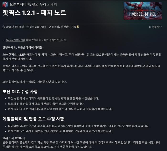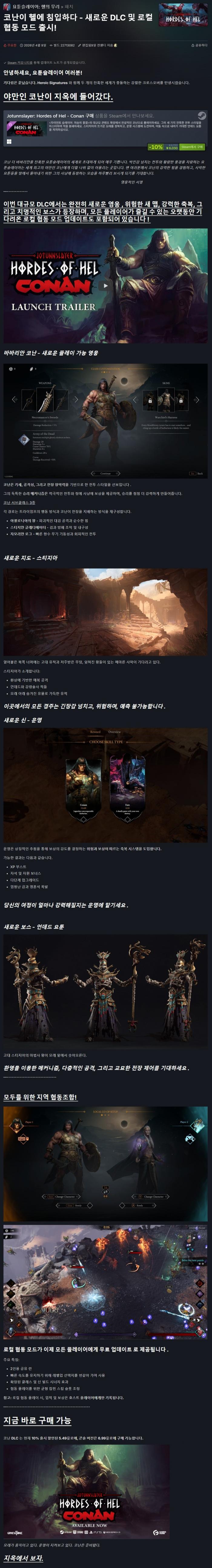 v1.2.1 26년 4월 16일 업데이트 버전 (야만인 코난 신규 DLC 포함)