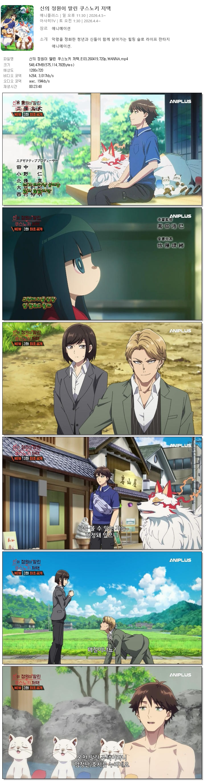 auto_awesome 애니 신의 정원이 딸린 신의 정원이 딸린 쿠스노키 저택.E03.260419.720p.WANNA person 바오*** calendar_today 2026.04.19 visibility 6,829 다운로드 1개 파일 folder_zip 신의 정원이 딸린 쿠스노키 저택.E03.260419.720p.WANNA.mp4 548 MB download