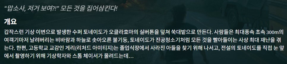 movie 영화 인투 스톰 “맙소사 인투 더 스톰 “맙소사, 저거 보여?!” 모든 것을 집어삼킨다! person gg*** calendar_today 2026.04.20 visibility 4,732 다운로드 2개 파일 folder_zip 인투 더 스톰.mkv 3.8 GB download folder_zip 인투 더 스톰.smi download