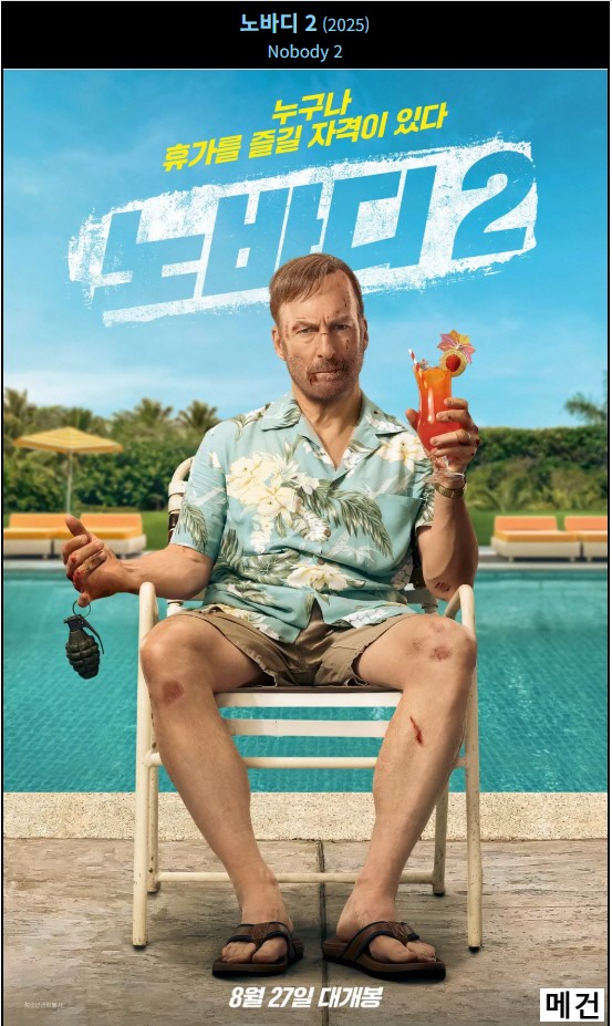 movie 영화 노바디 Nobody 아저씨는 4K [노바디 2] Nobody 2. 2025 (아저씨는 쉬고 싶다.) person 메건*** calendar_today 2026.04.20 visibility 4,723 다운로드 2개 파일 folder_zip 4K. 노바디 2. 2025 (파일, 제목, 스샷 도용 금지!! 작성자 메건).mkv 4.8 GB download folder_zip 4K. 노바디 2. 2025 (파일, 제목, 스샷 도용 금지!! 작성자 메건).srt download