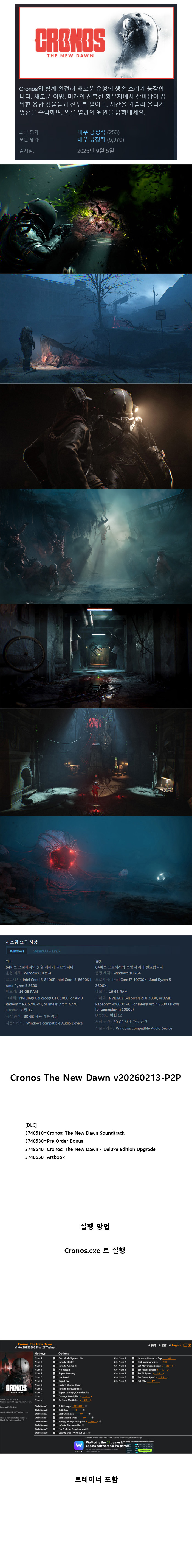 sports_esports 게임 한글무설치 v20260213 P2P 한글무설치 (v20260213-P2P) 크로노스 뉴던 : 디럭스 에디션 + 트레이너 person js*** calendar_today 2026.01.01 visibility 5,668 복호화 0000절대 바탕화면에 다운 받지 마시고 D 드라이브에 윈도우 탐지 제외 Game 폴더를 만들어서다운 받아야 합니다. 그 후 반디집으로 압축 푸세요게임 실행 확인하고 다시 복호화 해서 올립니다.게임 경로에 절대 한글 포함되지 않게 하세요. 오류 뜹니다.게임 저장되는 내 문서도 Documents로 변경하세요업로드 하는 모든 게임은 실행 확인하고 올립니다. 다운로드 1개 파일 folder_zip Cronos.The.New.Dawn.v20260213-P2P.zip 21.6 GB download