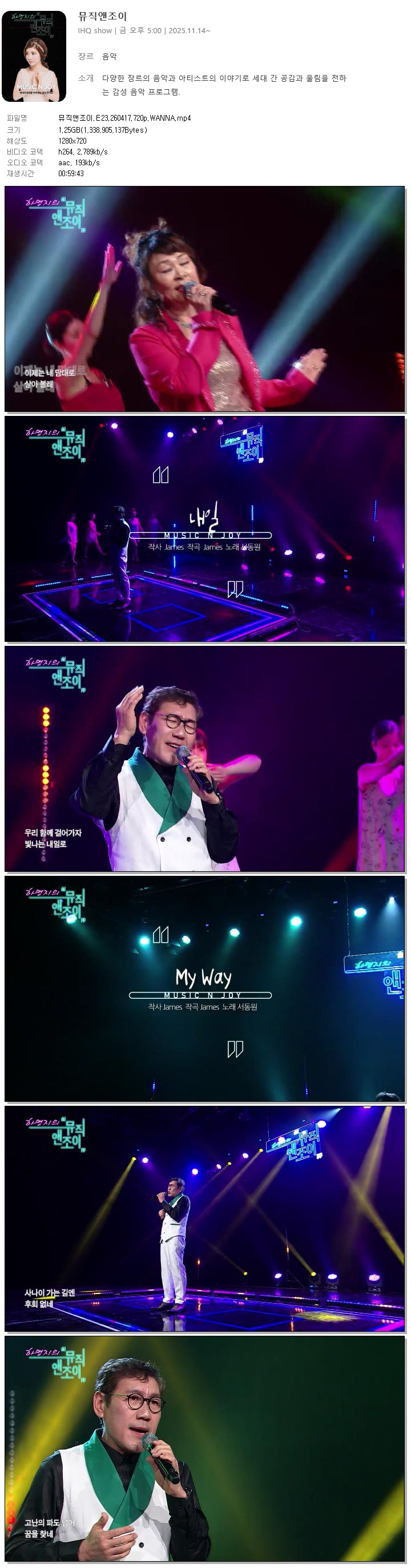 play_circle 동영상 뮤직앤조이 E23 WANNA 뮤직앤조이.E23.260417.720p.WANNA person 바오*** calendar_today 2026.04.24 visibility 4,067 다운로드 1개 파일 folder_zip 뮤직앤조이.E23.260417.720p.WANNA.mp4 1.2 GB download