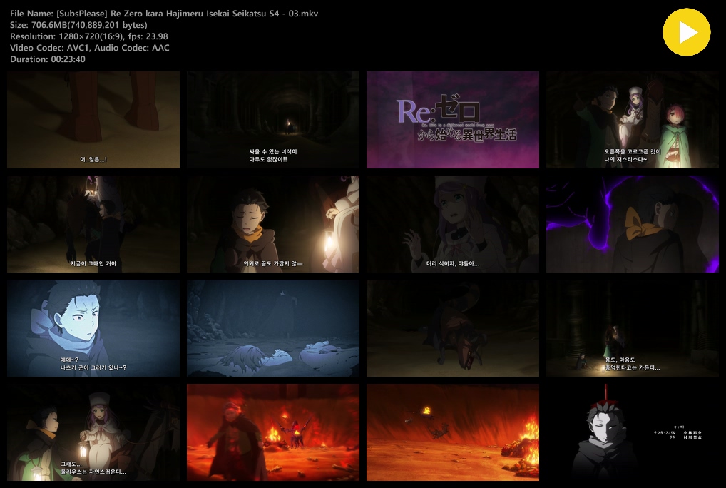 auto_awesome 애니 Re 제로부터 시작하는 Re 제로부터 시작하는 이세계 생활 4기 (2026) - 03 (1280x720) person zz*** calendar_today 2026.04.24 visibility 7,948 다운로드 2개 파일 folder_zip [SubsPlease] Re Zero kara Hajimeru Isekai Seikatsu S4 - 03.mkv 707 MB download folder_zip [SubsPlease] Re Zero kara Hajimeru Isekai Seikatsu S4 - 03.srt download
