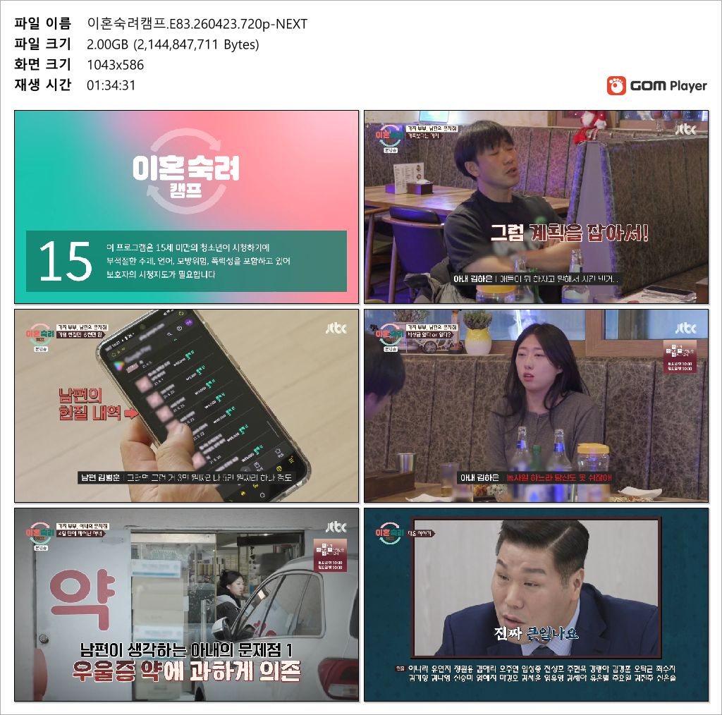 play_circle 동영상 이혼숙려캠프 E83 NEXT 이혼숙려캠프.E83.260423.720p-NEXT person gm*** calendar_today 2026.04.25 visibility 4,963 다운로드 1개 파일 folder_zip 이혼숙려캠프.E83.260423.720p-NEXT.mp4 2.0 GB download