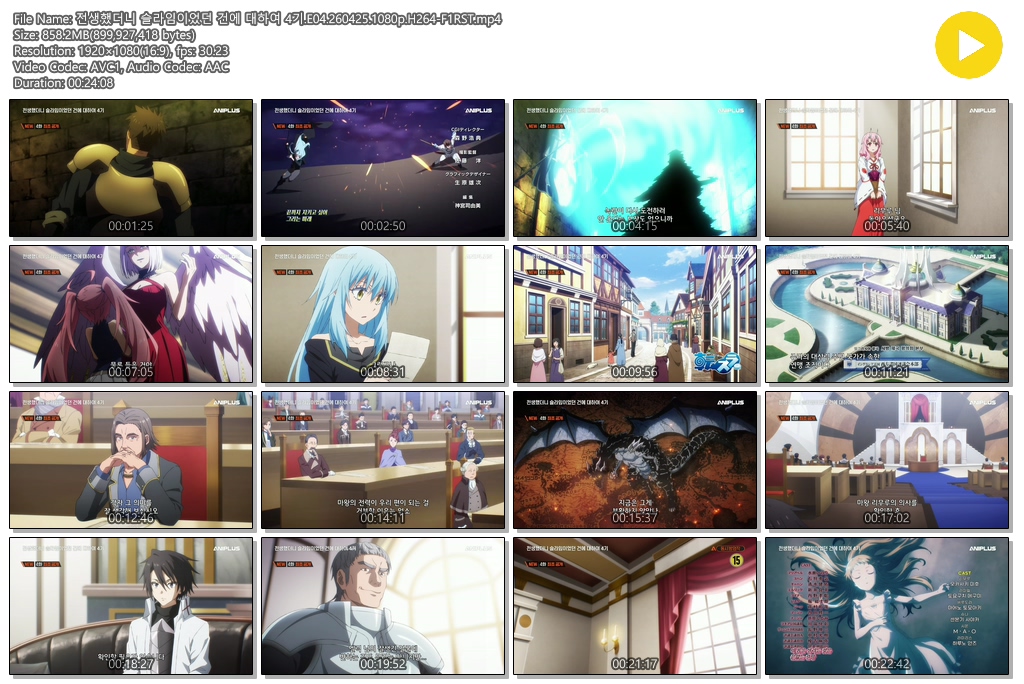 auto_awesome 애니 전생했더니 슬라임이었던 건에 전생했더니 슬라임이었던 건에 대하여 4기.E04.260425.1080p.H264-F1RST person se*** calendar_today 2026.04.25 visibility 7,165 다운로드 1개 파일 folder_zip 전생했더니 슬라임이었던 건에 대하여 4기.E04.260425.1080p.H264-F1RST.mp4 858 MB download