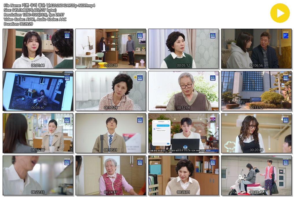 tv 드라마 기쁜 우리 좋은 기쁜 우리 좋은 날.E20.260424.720p-NEXT person se*** calendar_today 2026.04.26 visibility 4,933 다운로드 1개 파일 folder_zip 기쁜 우리 좋은 날.E20.260424.720p-NEXT.mp4 645 MB download