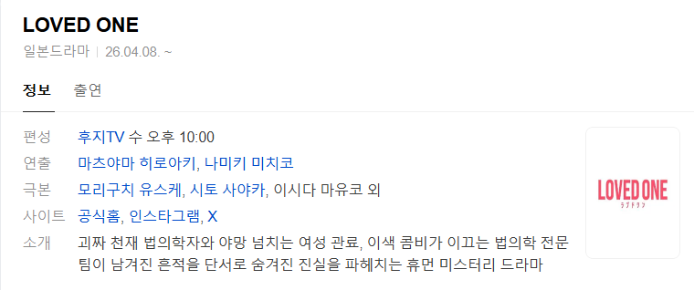 tv 드라마 러브드 E01 NF 러브드 원.E01.NF.WEB-DL.1080p.H.264.AAC2.0 person iq*** calendar_today 2026.04.26 visibility 7,336 참고; 한글자막 파일 첨부 다운로드 2개 파일 folder_zip LOVED.ONE.S01E01.NF.WEB-DL.1080p.H.264.AAC2.0.mkv 1.6 GB download folder_zip LOVED.ONE.S01E01.NF.WEB-DL.1080p.H.264.AAC2.0.srt download