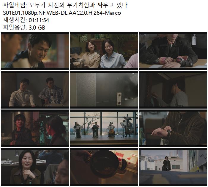 tv 드라마 모두가 자신의 무가치함과 모두가 자신의 무가치함과 싸우고 있다.S01E01.1080p.NF.WEB-DL.AAC2.0.H.264-Marco person zn*** calendar_today 2026.04.26 visibility 3,292 다운로드 1개 파일 folder_zip 모두가 자신의 무가치함과 싸우고 있다.S01E01.1080p.NF.WEB-DL.AAC2.0.H.264-Marco.mkv 3.0 GB download