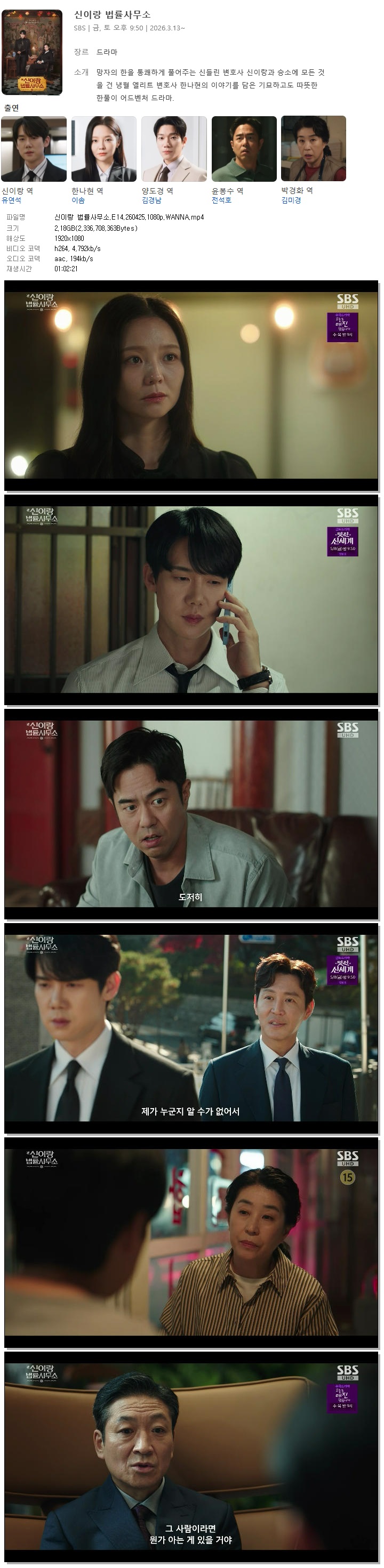 tv 드라마 신이랑 법률사무소 E14 신이랑 법률사무소.E14.260425.1080p.WANNA person 홀리*** calendar_today 2026.04.26 visibility 5,703 다운로드 1개 파일 folder_zip 신이랑 법률사무소.E14.260425.1080p.WANNA.mp4 2.2 GB download