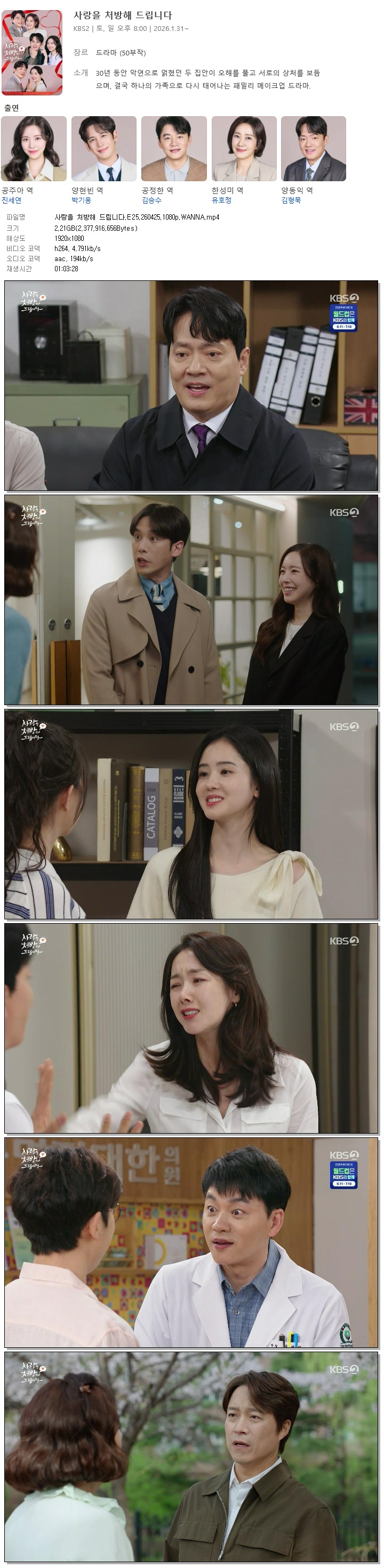 tv 드라마 사랑을 처방해 드립니다 사랑을 처방해 드립니다.E25.260425.1080p.WANNA person 홀리*** calendar_today 2026.04.26 visibility 3,879 다운로드 1개 파일 folder_zip 사랑을 처방해 드립니다.E25.260425.1080p.WANNA.mp4 2.2 GB download
