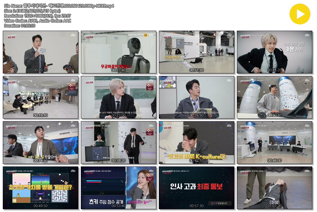 play_circle 동영상 할루시네이션 해고전쟁 E02 할루시네이션- 해고전쟁.E02.260425.1080p-NEXT person se*** calendar_today 2026.04.26 visibility 6,707 다운로드 1개 파일 folder_zip 할루시네이션- 해고전쟁.E02.260425.1080p-NEXT.mp4 2.4 GB download