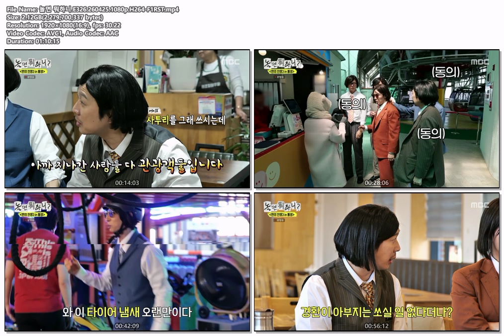 play_circle 동영상 놀면 뭐하니 E326 놀면 뭐하니.E326.260425.1080p.H264-F1RST.mp4 person he*** calendar_today 2026.04.26 visibility 3,848 다운로드 1개 파일 folder_zip 놀면 뭐하니.E326.260425.1080p.H264-F1RST.mp4.jpg 266 KB download
